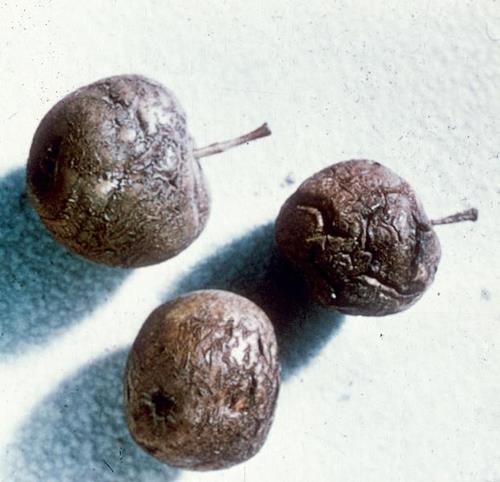 La superficie de los frutos muestra zonas acorchadas y rajas. Los frutos son a menudo pequeños y deformes.